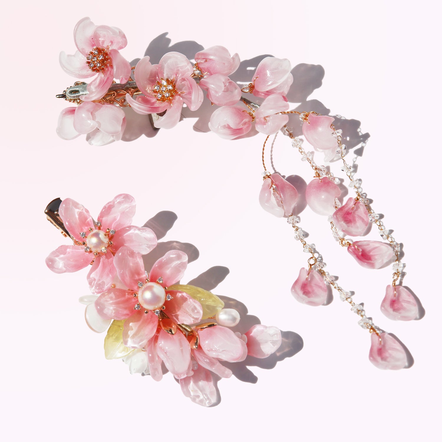 Colorful crystals with floral charms create a playful yet elegant touch. Perfect for adding a burst of personality to any outfit.