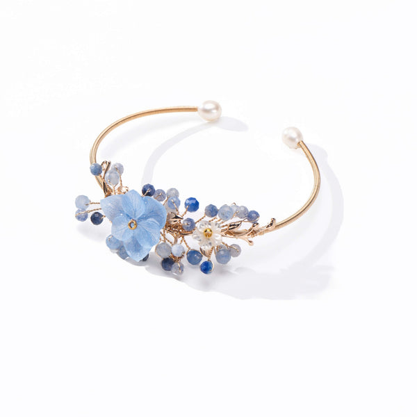 *Real Flower* Blue Hydrangea Crystal Beaded Bracelet