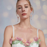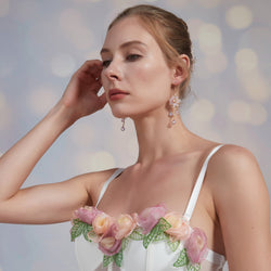 Delicate pink petals adorned with a lustrous pearl at the center cascade into shimmering crystal teardrops, creating a dreamy, ethereal look. Perfect for special occasions or adding a touch of sophistication to everyday wear. Lightweight and graceful, these earrings capture the beauty of nature's gentle bloom.