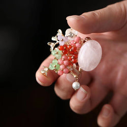 Meticulously crafted with four natural crystal stones, this piece exudes enchanting allure. Featuring serene amethyst, vibrant citrine, calming aquamarine, and a standout rose quartz, each stone is chosen for its unique color, energy, and natural beauty.