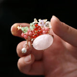Crystal Flower Rose Quartz Brooch/ Final Sale