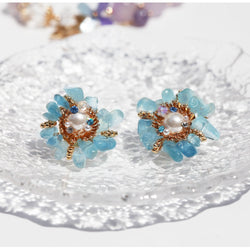 • Material: natural aqua marine crystal stones + 18K gold-plated post + crystal pearls