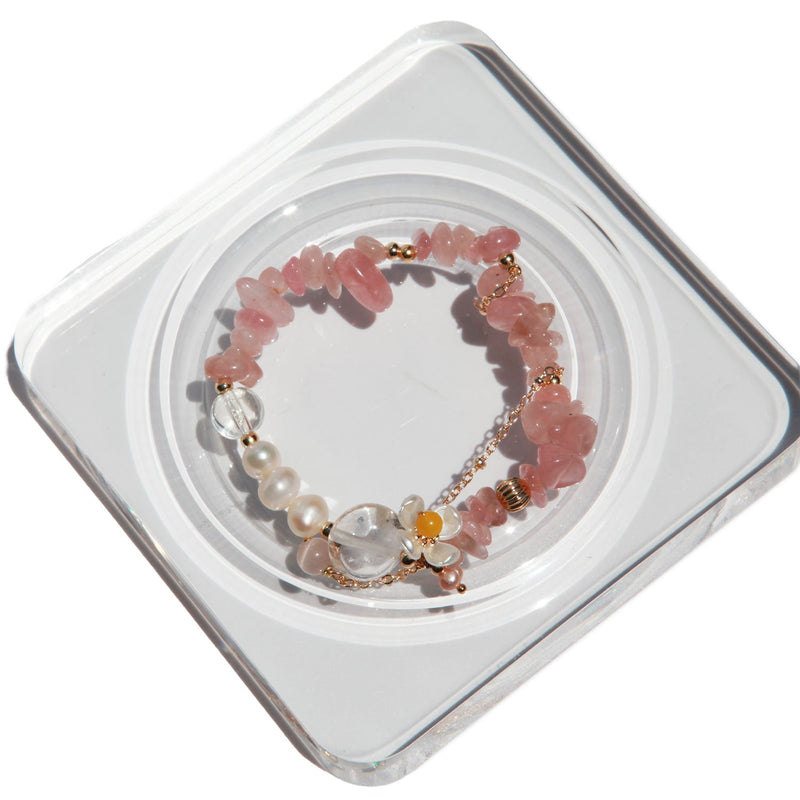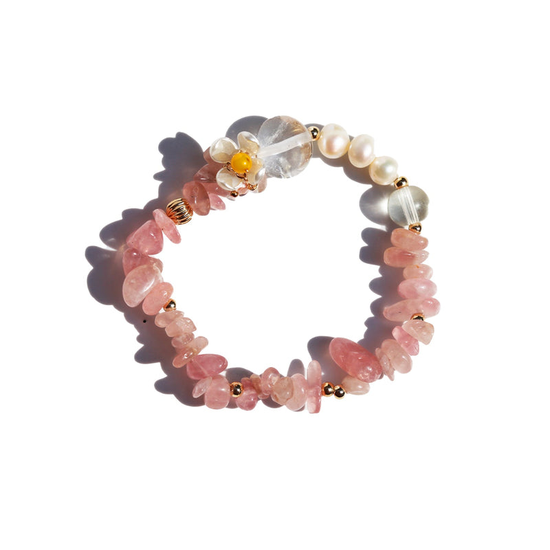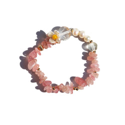Rose Quartz Flower Charm Bracelet (Final Sale)